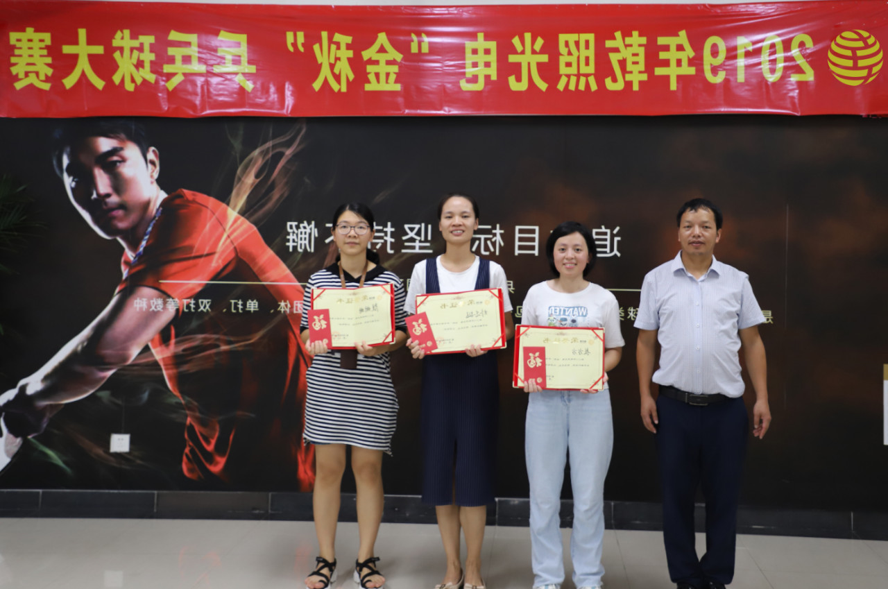 4月19日—26日,乾照微电子兵兵球社举办活动了2021年兵兵球竞赛。过程海选赛、复赛、半公开赛和公开赛的竞争角逐,最终能够品管部周耀东、电源芯片研发部侯福山、霸道霸道总裁办解鹏越、资源优化配置部林锋杰分开 是提升男士单打冠、亚、季军和第六名;品管部颜姗姗、前景提示探讨院段方方和卖出方法部林志铤分开 是提升妙龄女子单打冠、亚、季军;品管部周耀东、科技中心的陈婉菁和霸道霸道总裁办解鹏越、前景提示探讨院冯妍雪分开 是提升男人和女人混双榜首和夺得亚军。