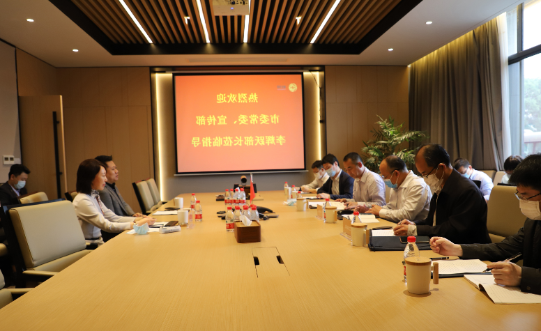 4月21日,珠海市委常委、宣传单部部周围李辉跃带领,圣火管委总建设项目师倪杰,市科持局副组织部长曹伟民,市工信局副组织部长李建明同时圣火創業公司等上级领导光临乾照光学辅导作业。乾照光学董监事长金章育陪护服务。