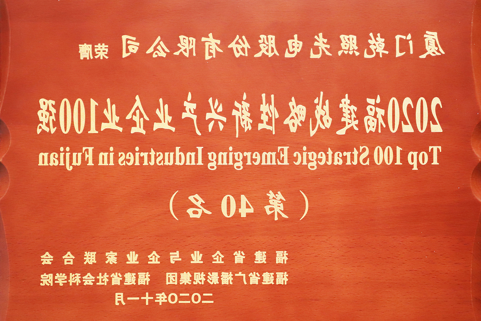 荣获“2020福建战略性新兴产业100强(第40名)”证书