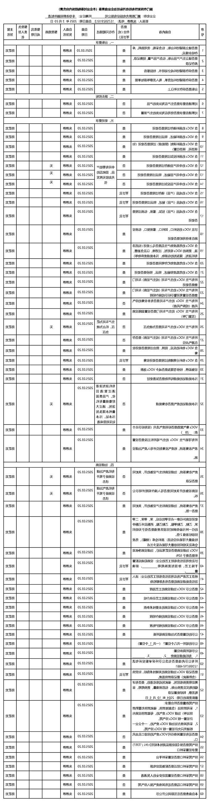 挥发性有机会物性有机会物环境污染预防企业公司排查表