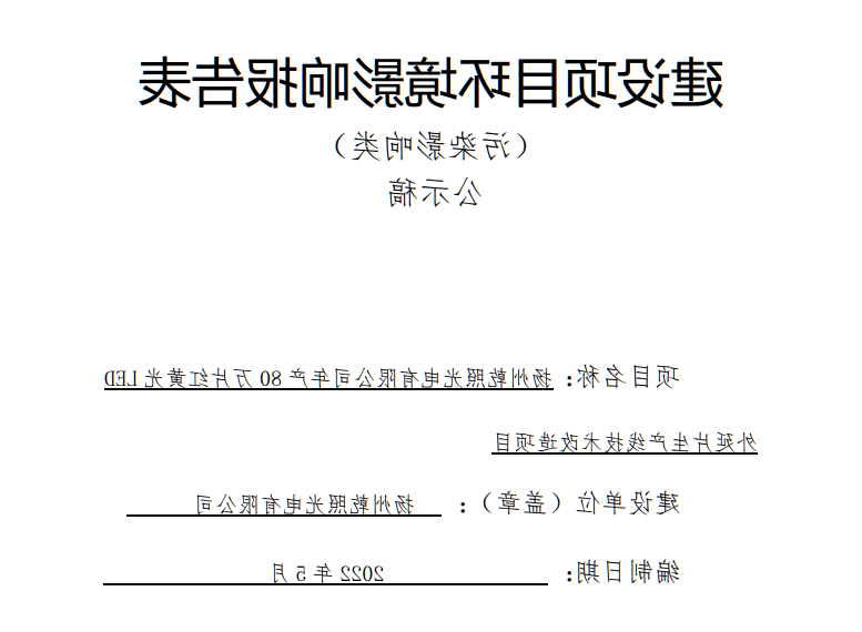 扬州Vsport体育 有限公司年产80万片红黄光LED外延片生产线技术改造项目环境影响报告表公示稿