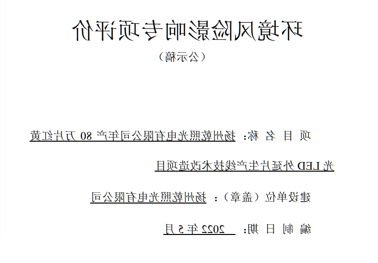扬州Vsport体育 有限公司年产80万片红黄光LED外延片生产线技术改造项目环境风险影响专项评价公示稿