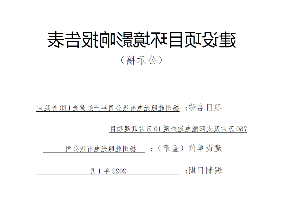 2023-04-02 《南通乾照微电子有限的责任子司生产量红黄光LED本质片760万片及阳光的光能动力电池本质100万片迁建该项目环境不良影响报告格式表公示情况报告稿》 /uploadfiles/2022/04/20220402144205425.pdf 《南通乾照微电子有限的责任子司生产量红黄光LED本质片760万片及阳光的光能电...
