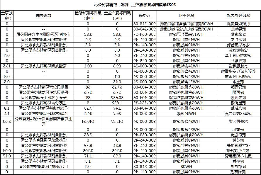 扬州Vsport体育 有限公司2021年第四季度危废产生、转移、贮存情况公示