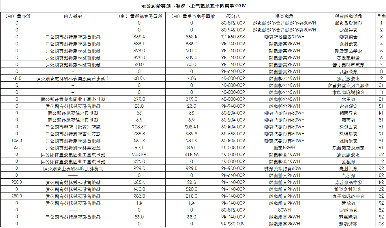 扬州Vsport体育 2022年第四季度危废产生、转移、贮存情况公示