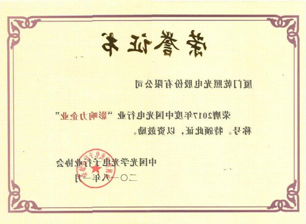 2015年度中国有光学行业内“竟争力力工厂”